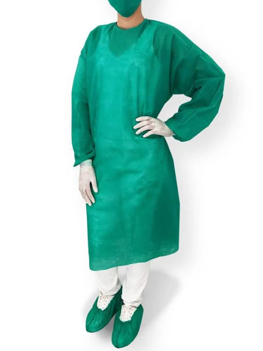 Abertura e fechamento: Abertura frontal com fechamento em botões de pressão ou velcro; abertura traseira com fechamento em tiras para amarrar atrás do pescoço e na cintura.